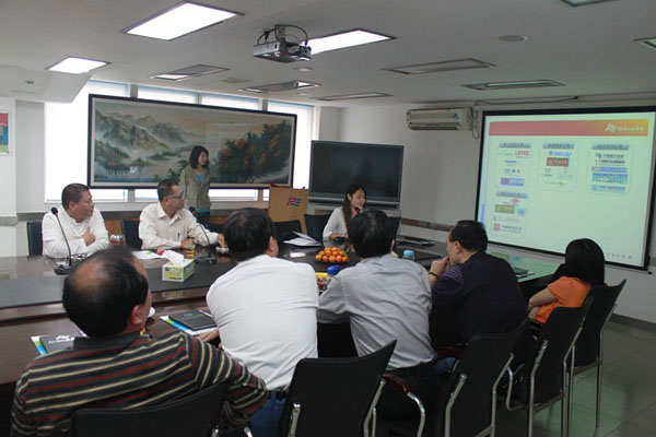 (到訪領(lǐng)導(dǎo)認(rèn)真聽取集團(tuán)介紹、觀看三大系統(tǒng)的演示)