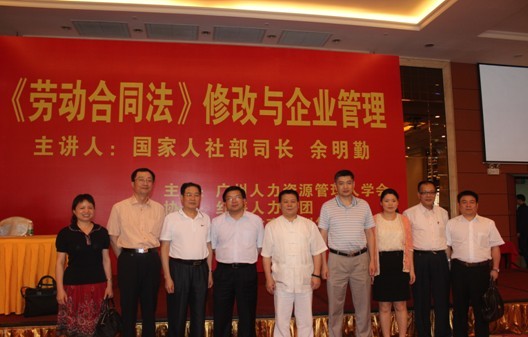 2012年5月19日,由廣州人力資源管理人學(xué)會主辦,紅海人力集團(tuán)、紅日教育培訓(xùn)集團(tuán)協(xié)辦,國家人社部司長余明勤主講的“《勞動合同法》修改與企業(yè)管理專題講座”在廣信江灣新城大酒店商業(yè)中心五樓國際宴會廳圓滿結(jié)束。市勞動局政策法規(guī)處沈源處長;勞動關(guān)系處吳林濤處長;信訪舉報中心陳健明主任出席了此次講座。