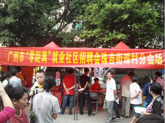 為了給廣大求職者提供更多的就業(yè)機會,10月17號,由紅海人力集團天河分公司和珠吉街勞動和社會保障服務中心共同舉辦2012年廣州市“零距離”就業(yè)社區(qū)招聘會—珠吉街專場在珠村市場如期進行。