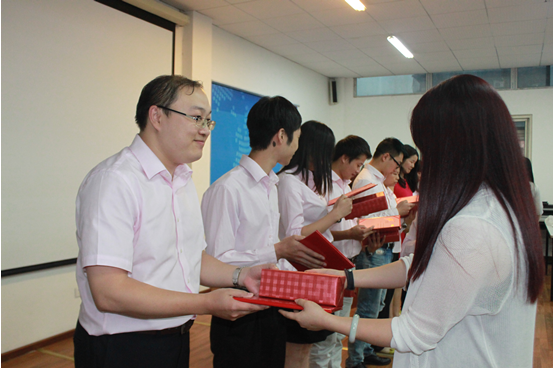 總結(jié)大會(huì)最后,由精益經(jīng)營(yíng)管理平臺(tái)推動(dòng)小組組長(zhǎng)李嬪副總裁和副組長(zhǎng)何慕蓉為本次培訓(xùn)考核成績(jī)名列前八名的學(xué)員頒發(fā)“優(yōu)秀學(xué)員”榮譽(yù)證書和獎(jiǎng)品。他們分別是:四川紅海劉貽婷85分、湖北紅海總部張麗華83.85分、惠州分公司黃思芹82.6分、甘肅紅??偛坷畲?1.75分、湖南紅海婁底分公司李瑩80.9分、湖南紅海長(zhǎng)沙分公司鄧佳琪80.15分、湖南紅海常德分公司汪育東80分、湖北紅海恩施分公司周磊79.5分。
