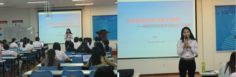 在10月13日上午精益經(jīng)營(yíng)管理平臺(tái)培訓(xùn)動(dòng)員大會(huì)上,精益經(jīng)營(yíng)管理平臺(tái)推動(dòng)小組副組長(zhǎng)、紅海網(wǎng)絡(luò)科技公司何慕蓉發(fā)表動(dòng)員講話,并對(duì)培訓(xùn)目的、培訓(xùn)要求、培訓(xùn)安排和培訓(xùn)流程作詳細(xì)的說明。