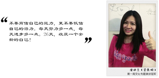 小編記得,在訓(xùn)練營(yíng)開(kāi)學(xué)第一天,工作組告訴大家培訓(xùn)或?qū)⒔?jīng)歷四個(gè)階段:新鮮、疲憊、奮發(fā)、不舍。的確,隨著培訓(xùn)節(jié)奏的不斷加快,課業(yè)壓力的逐步累積,學(xué)員們也逐漸感受到來(lái)自于隊(duì)員之間的你追我趕,團(tuán)隊(duì)之間的爭(zhēng)先奪后。有的學(xué)員通過(guò)導(dǎo)師的幾句引導(dǎo),便能隨時(shí)隨地結(jié)合實(shí)際暢所欲談,而有的學(xué)員,拼勁全力也難以消化當(dāng)天課程上所教授的知識(shí)。但是所有的學(xué)員都明白一個(gè)道理,團(tuán)隊(duì)的學(xué)習(xí)就是追求共同的進(jìn)步。小編常在課間看到學(xué)員們聚精會(huì)神就所學(xué)知識(shí)進(jìn)行研究、討論,在自習(xí)時(shí)看到綜合能力較好的學(xué)員指導(dǎo)隊(duì)友如何進(jìn)一步完善微信感悟?;蛟S隊(duì)友走得并不快,但輔導(dǎo)、幫助他跟上團(tuán)隊(duì)是每一個(gè)隊(duì)員的義務(wù)與責(zé)任,我們要把這股正能量在第三期的訓(xùn)練營(yíng)中傳遞。