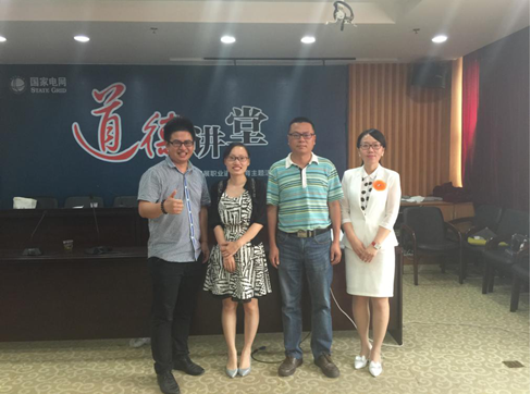 湘潭紅海培訓(xùn)負責人項斌(左一)湘鄉(xiāng)電力局局領(lǐng)導(dǎo)(左二、三)講師(右一)