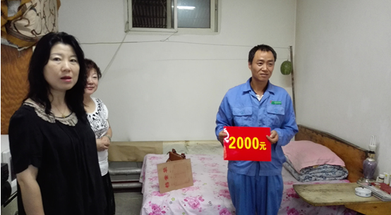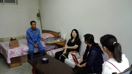 張主席一行首先來(lái)到項(xiàng)目組員工工作和住宿的地方詢問(wèn)員工的工作和生活情況,并和員工拉起了家常,仔細(xì)了解員工工作和生活中遇到的困難和要求,并做了詳細(xì)記錄,表示下一步會(huì)仔細(xì)研究協(xié)調(diào)解決。接著就來(lái)到了員工楊鳳軍的住處,詳細(xì)詢問(wèn)了楊鳳軍的家庭情況和子女的教育入學(xué)情況,并對(duì)楊鳳軍的兒子順利考入西南交通大學(xué)表示祝賀,同時(shí)送上了工會(huì)“金秋助學(xué)”補(bǔ)助金2000元。楊鳳軍對(duì)張主席一行表示了熱烈歡迎,也對(duì)企業(yè)和市總工會(huì)的幫助表示了衷心的感謝,生活的重?fù)?dān)和困頓沒(méi)有壓垮這個(gè)西北漢子,但面對(duì)企業(yè)和工會(huì)雪中送炭的幫助留下了感動(dòng)的淚水。