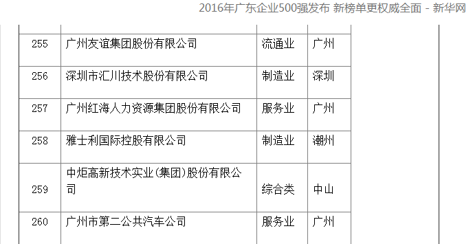 廣東省企業(yè)聯(lián)合會(huì)、廣東省企業(yè)家協(xié)會(huì)近日發(fā)布了2016年廣東省企業(yè)500強(qiáng)排行榜,新排行榜顯示廣東500強(qiáng)企業(yè)的規(guī)模、質(zhì)量、效益穩(wěn)步提升,在國內(nèi)外的影響力持續(xù)擴(kuò)大。廣州紅海人力資源集團(tuán)股份有限公司榜上有名,排行257位,成為人力資源行業(yè)唯一上榜企業(yè)。