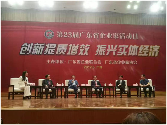 2017年5月10日,由廣東省企業(yè)聯(lián)合會、廣東省企業(yè)家協(xié)會舉辦的第23屆廣東省企業(yè)家活動日大會在廣州白云國際會議中心隆重舉行。出席活動的嘉賓領(lǐng)導(dǎo)有省政協(xié)主席王榮、省人大常委會副主任黃業(yè)斌、副省長袁寶成、中國企聯(lián)常務(wù)副會長兼理事長朱宏任、省企聯(lián)原會長鐘啟權(quán),以及省科技廳、省商務(wù)廳、省經(jīng)信委、省國資委等省直有關(guān)部門領(lǐng)導(dǎo)與來自全省各行業(yè)、各地區(qū)的800余名企業(yè)家代表共同出席大會。