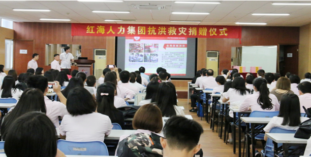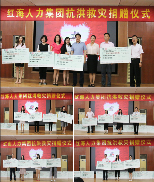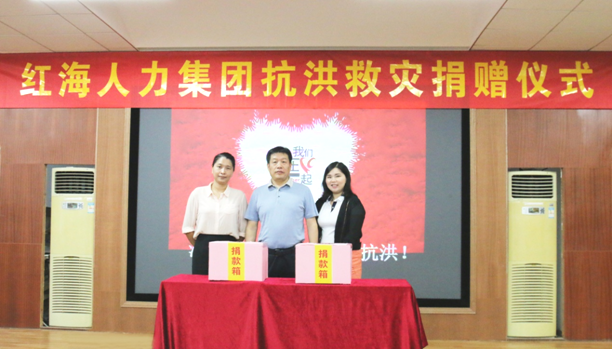 2017年7月10日,集團(tuán)工會組織集團(tuán)總部、紅海瀚洋系統(tǒng)、深圳紅海系統(tǒng)、廣州片區(qū)集團(tuán)、華南片區(qū)集團(tuán)、紅日咨詢培訓(xùn)集團(tuán)、紅??萍技瘓F(tuán)等單位參加抗洪救災(zāi)捐贈儀式。