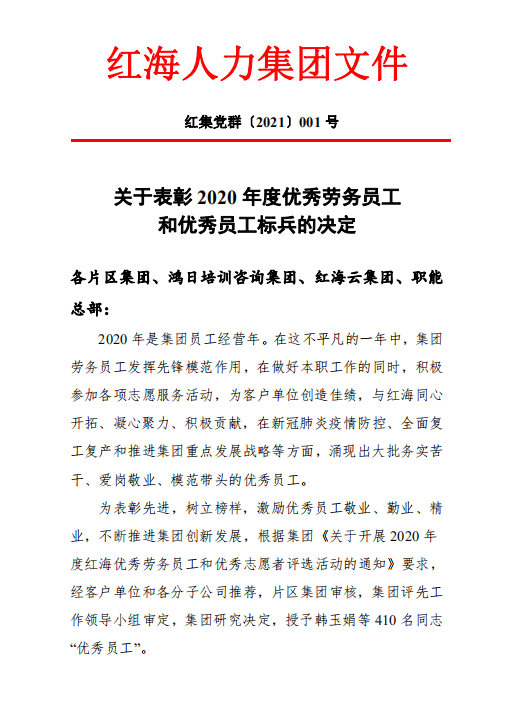 紅集黨群〔2021〕001號 關(guān)于表彰2020年度優(yōu)秀員工和優(yōu)秀員工標(biāo)兵的決定.pdf