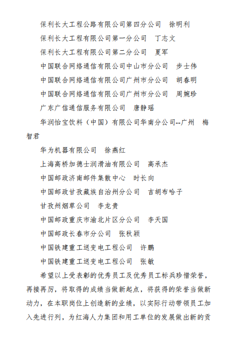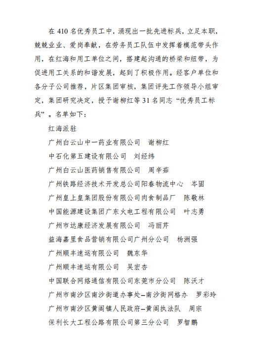 關(guān)于表彰2020年度優(yōu)秀勞務(wù)員工和優(yōu)秀員工標(biāo)兵的決定