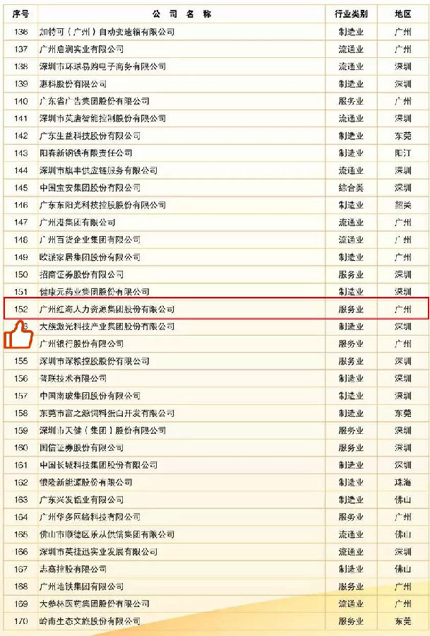 8月29日上午,以“大灣區(qū) 大企業(yè) 大擔(dān)當(dāng)”為主題的2019廣東企業(yè)500強(qiáng)發(fā)布大會(huì)在廣州白云國際會(huì)議中心舉行,廣東省人民政府副省長陳良賢出席大會(huì)并講話。紅海人力集團(tuán)成功入圍“廣東企業(yè)500強(qiáng)”,位列榜單第152位。