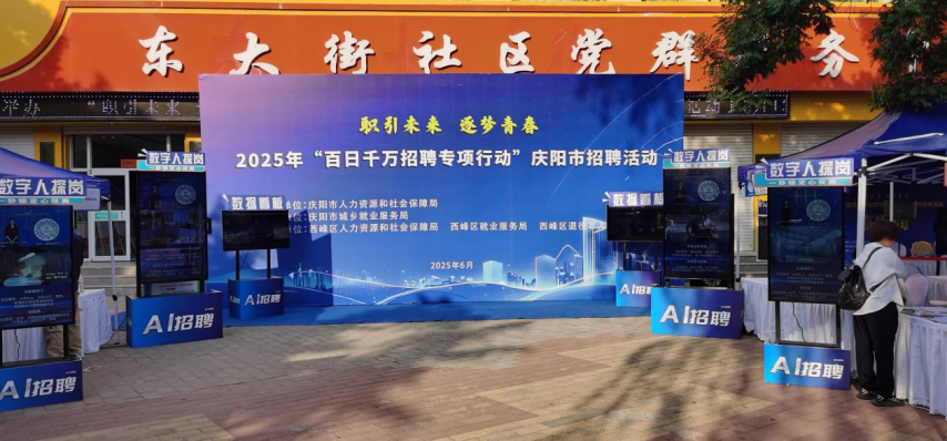 2025年6月13日下午,一場充滿科技感與創(chuàng)新活力的數(shù)智招聘會在慶陽市西峰區(qū)東大街社區(qū)火熱開展。此次招聘會由慶陽市人力資源和社會保障局主辦,慶陽市城鄉(xiāng)就業(yè)服務局承辦,西峰區(qū)人力資源和社會保障局、西峰區(qū)就業(yè)服務局、西峰區(qū)退役軍人事務局、甘肅紅海人力資源有限公司慶陽分公司共同協(xié)辦,以獨特的數(shù)字化形式,精準對接當下就業(yè)市場新趨勢,為求職者與企業(yè)架起了一座高效溝通的橋梁。